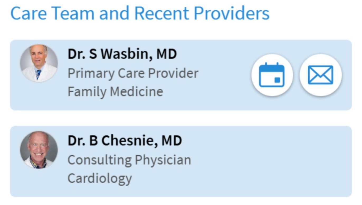 Primary care doctor (Dr. Wasbin) and cardiologist (Dr. Chesnie) confirm ongoing treatment for: