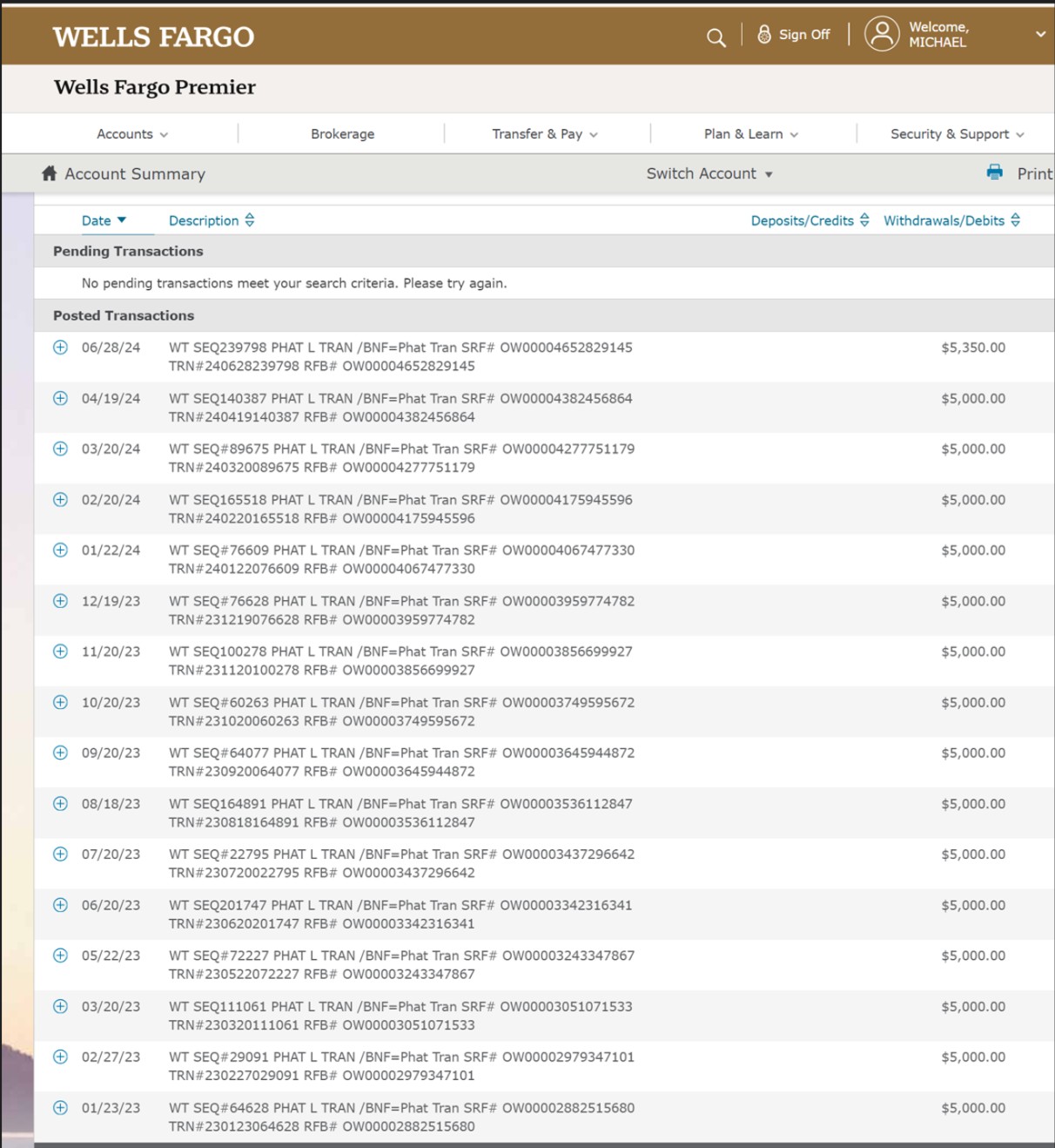 Evidence: Wells Fargo logs, USPS imaging, T28-series, bank statement screenshots, move-out notice.