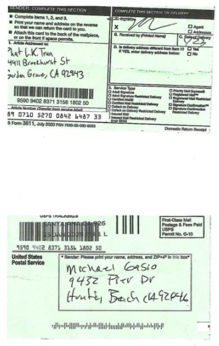 The physical package was later signed for by Phat K. Tran at his workplace.