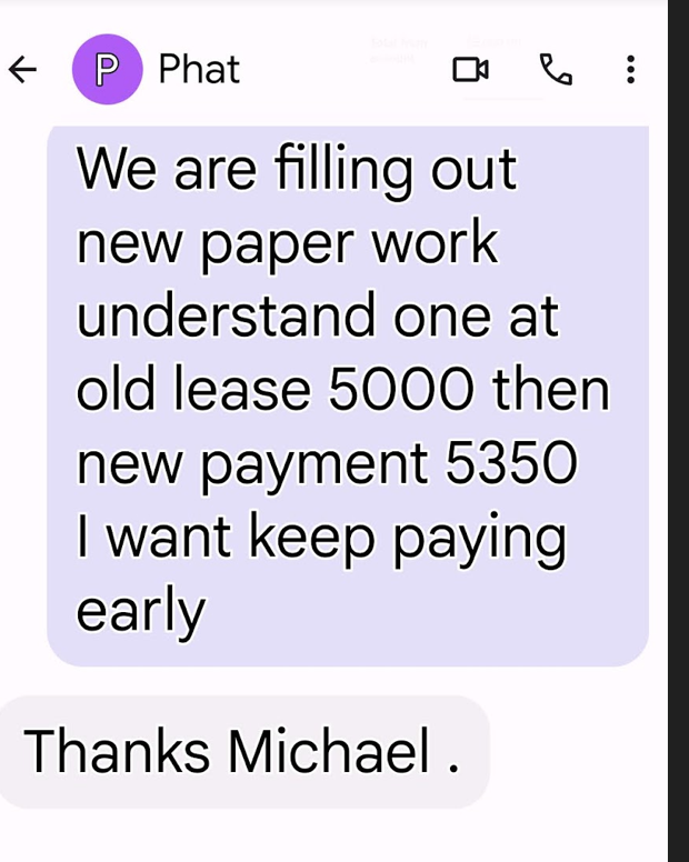 Hanson tells you he is preparing a new lease agreement even though you already had an existing signed contract and paid early.